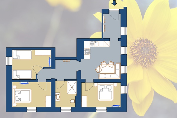 Unser großes Appartement im Obergeschoss für 4 bis 6 Personen.