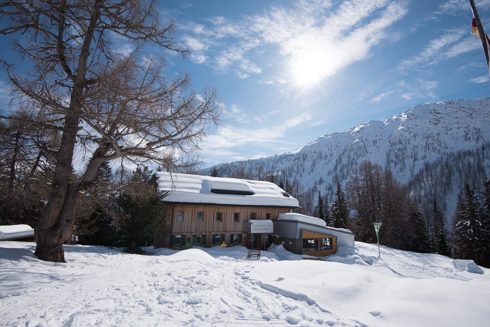 Tür auf, Ski an! Direkt vor dem Appartementhaus können Sie Ihre Skitour zum Fraganter Schutzhaus starten. Sie starten auf einer Seehöhe von 1.060 m und gelangen über Forststraßen und Felder zum Fraganter Schutzhaus, das auf einer Seehöhe von 1.810 m liegt. Sie bewältigen dabei also 750 Höhenmeter. Die Gehzeit beträgt ca. 2 Stunden.