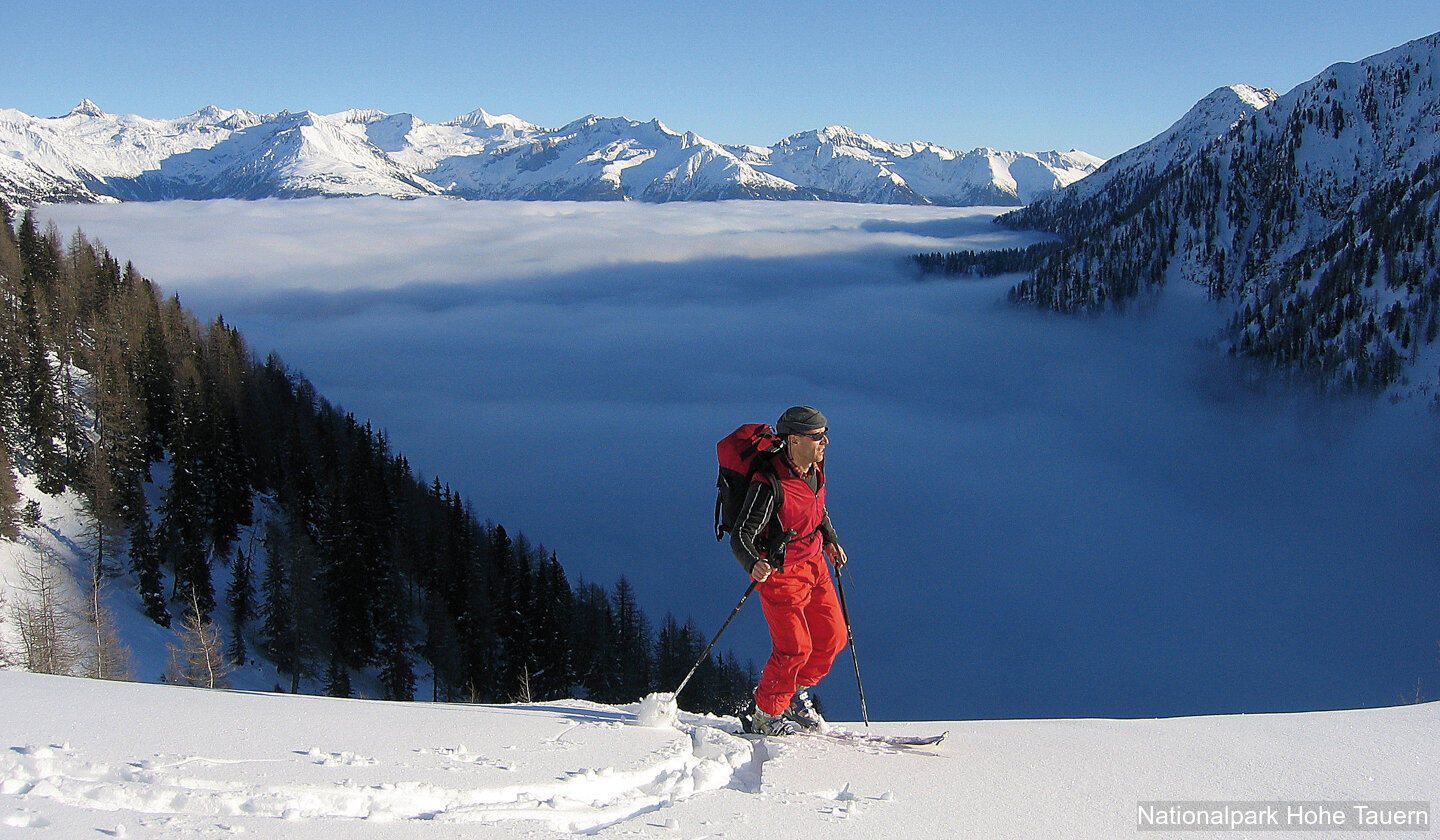 Erkundungstour mit den Skiern. Der Standort der Gletscher Appartements bietet sich hervorragend für Skitouren an. Der Nationalpark Hohe Tauern und seine umliegenden Berge sind das größte Skitourengebiet der Ostalpen.