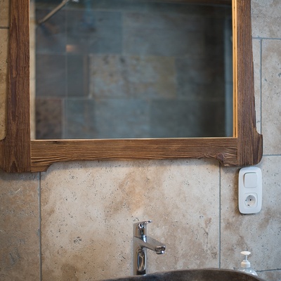 - Großes Badezimmer mit barrierefreier Regendusche (140 x 120 cm) und WC