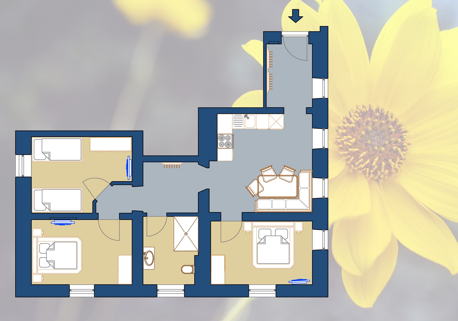 - SMART TVs (32" und 40") in jedem Zimmer und in der Küche mit einem großen TV-Angebot