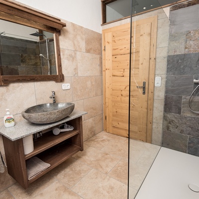 - Großes Badezimmer mit barrierefreier Dusche und WC
