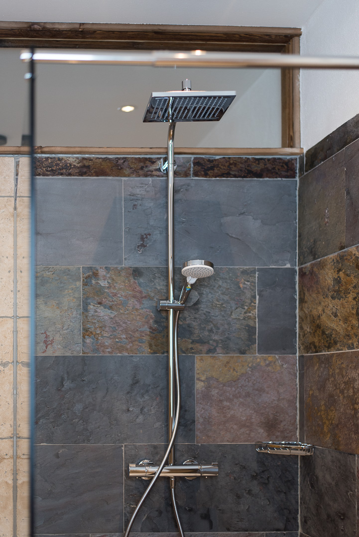 - Großes Badezimmer mit barrierefreier Regendusche (140 x 120 cm) und WC