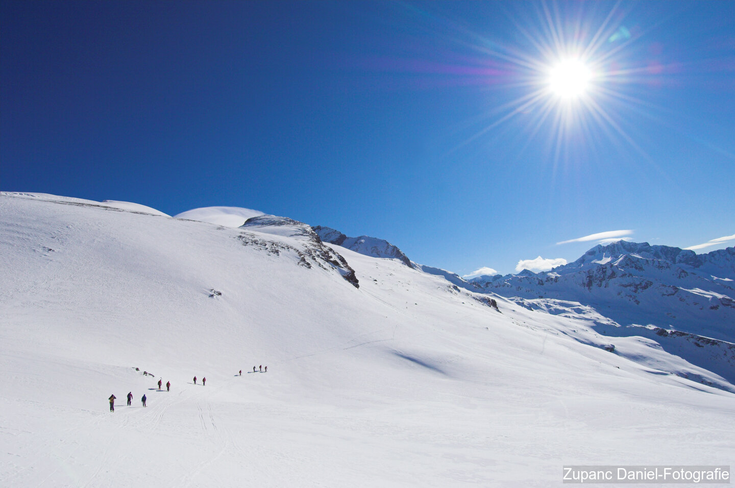 Wenn Sie eine ausgiebigere Tour machen wollen, können Sie von dort aus verschiedene Tourenfortsetzungen mit unterschiedlichen Schwierigkeitsgraden wählen. Ebenso können Sie auf Wunsch Touren mit einem geprüften Bergführer sowie professionelle Übungen mit den LVS-Geräten in Anspruch nehmen.