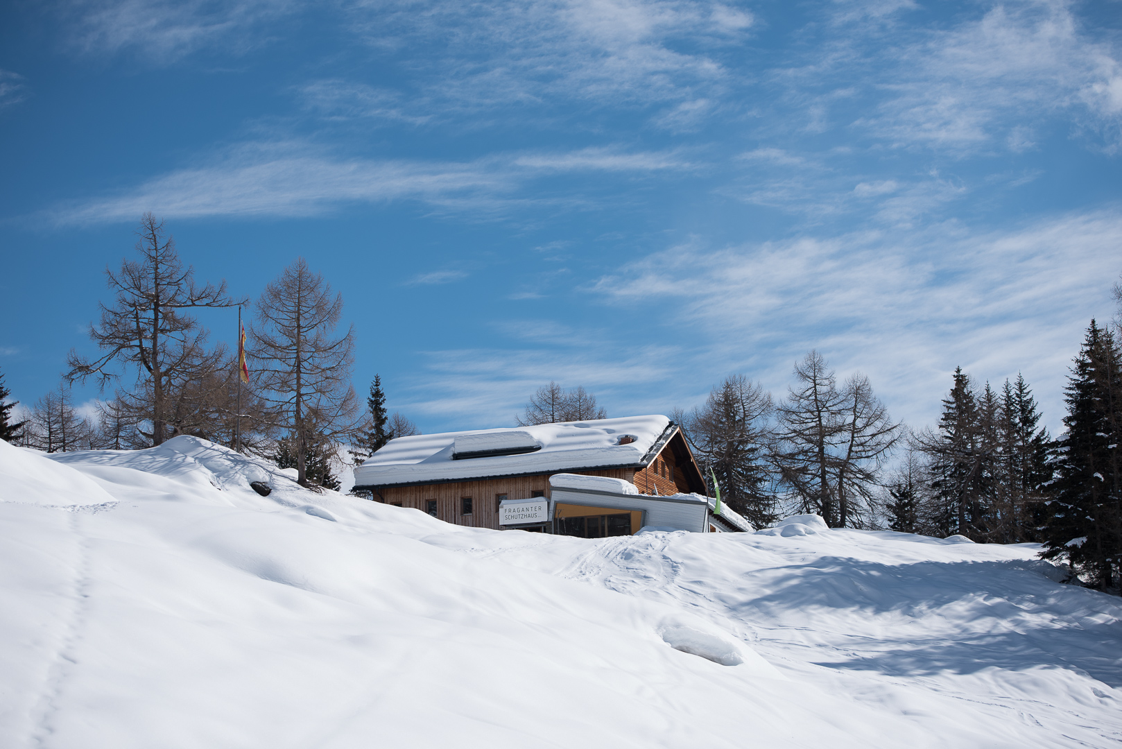 Tür auf, Ski an! Direkt vor dem Appartementhaus können Sie Ihre Skitour zum Fraganter Schutzhaus starten. Sie starten auf einer Seehöhe von 1.060 m und gelangen über Forststraßen und Felder zum Fraganter Schutzhaus, das auf einer Seehöhe von 1.810 m liegt. Sie bewältigen dabei also 750 Höhenmeter. Die Gehzeit beträgt ca. 2 Stunden.