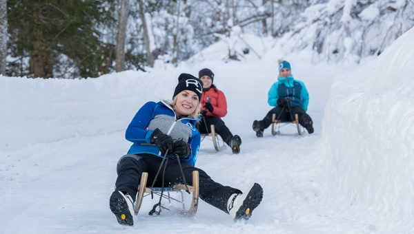 Mit Schwung ins Tal. Sausen Sie mit dem Schlitten auf den Waldwegen ins Tal. Im Nationalpark Hohe Tauern gibt es zahlreiche gut präparierte Rodelbahnen, von denen einige sogar abends beleuchtet werden.